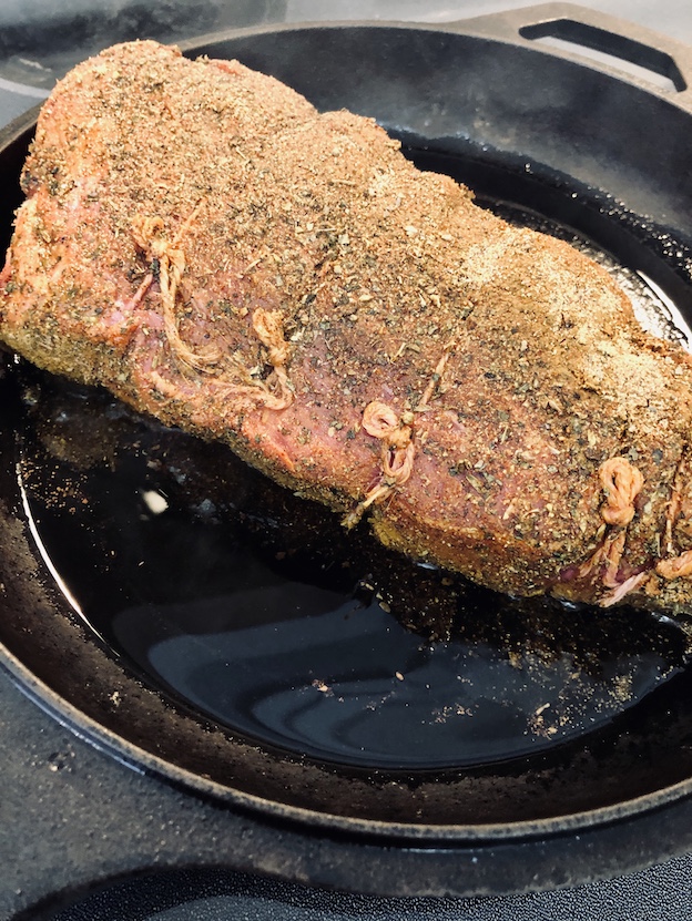 - Coat the bottom of a cast-iron pan with oil and set over medium-high heat. Once the oil is hot, place the meat in the pan, browning on all sides.