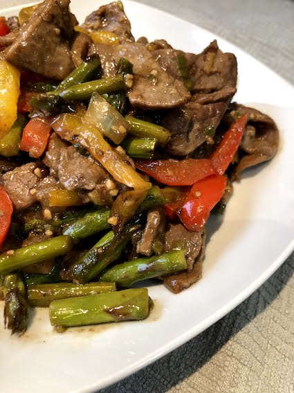 - 1.5 lbs steak (fast-fry), sliced into strips