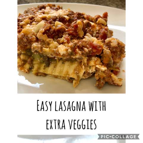 What makes this recipe ‘easy’? Well, it assumes the roasted vegetables have already been made. Same with the bolognese sauce. It also uses oven-ready lasagna noodles, cottage cheese instead of ricotta (not easier, but cheaper!), and pre-shredded mozzarella. For when you don’t have all day to make lasagna.