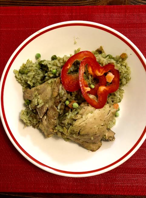 Pretty much every culture has their version of chicken & rice. The Peruvian version is green from cilantro.